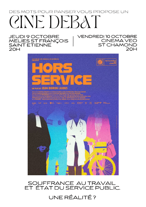 A deux reprises, Des Mots Pour Panser a pu recevoir Jean Boiron Lajous, réalisateur du documentaire Hors Service, pour un ciné débat, l’un au Méliès de St Etienne, le second au Véo à St Chamond.