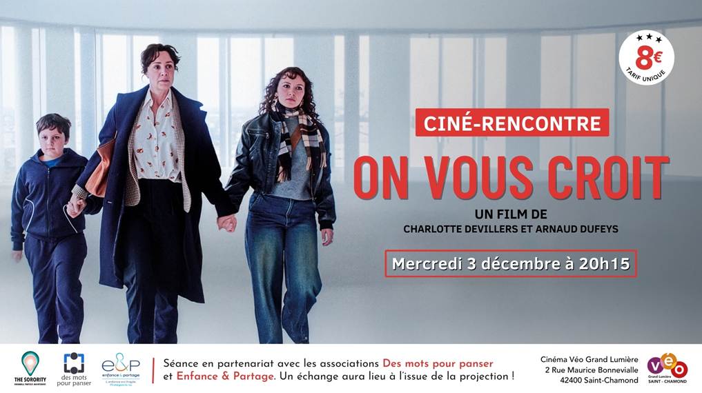 L’association a organisé le cinéma Véo de St Chamond un échange à la suite de la projection du film « On vous croit« , en présence des associations Sorority et Enfance et Partage.