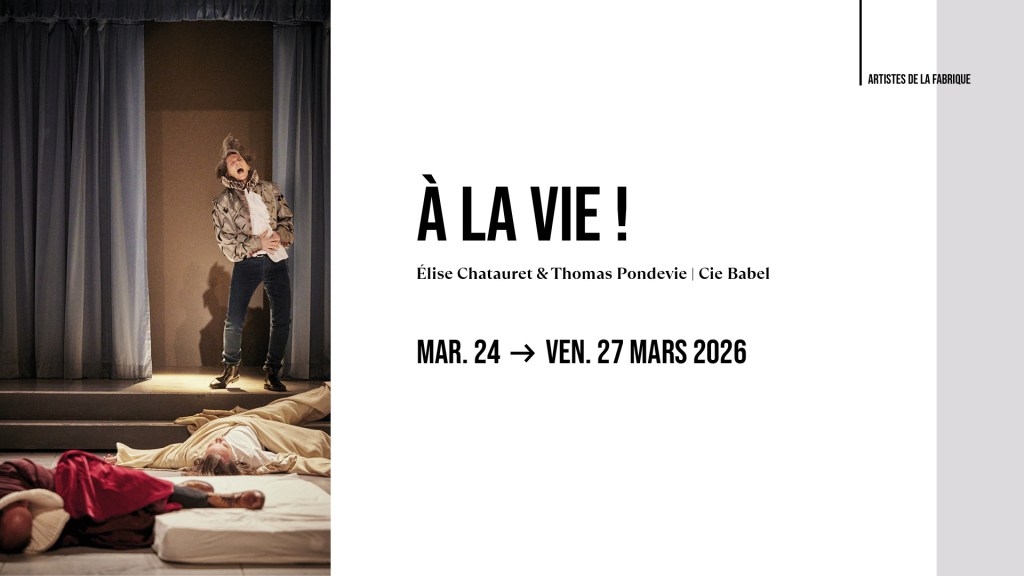 « Il entre et meurt. Elle entre, elle le voit, et se tue. Cela paraît aussi comique que tragique. À la vie ! joue à représenter la mort pour mieux la regarder en face. Le théâtre, lieu de l’éphémère par excellence, devient ici l’espace où se télescopent des scènes issues du répertoire classique avec d’autres scènes inspirées de nos réalités contemporaines.